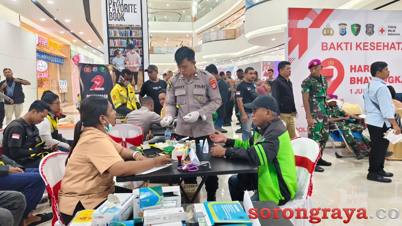 SORONG, sorongraya.co– Menyambut Hari Bhayangkara ke-79 yang jatuh pada 1 Juli 2025, Polda Papua Barat Daya menggelar kegiatan bakti sosial berupa donor darah dan pemeriksaan kesehatan gratis bagi para pengemudi ojek daring dan online. Kegiatan ini berlangsung di Mall Paragon Square, Kota Sorong, pada Senin (16/06/2025).
