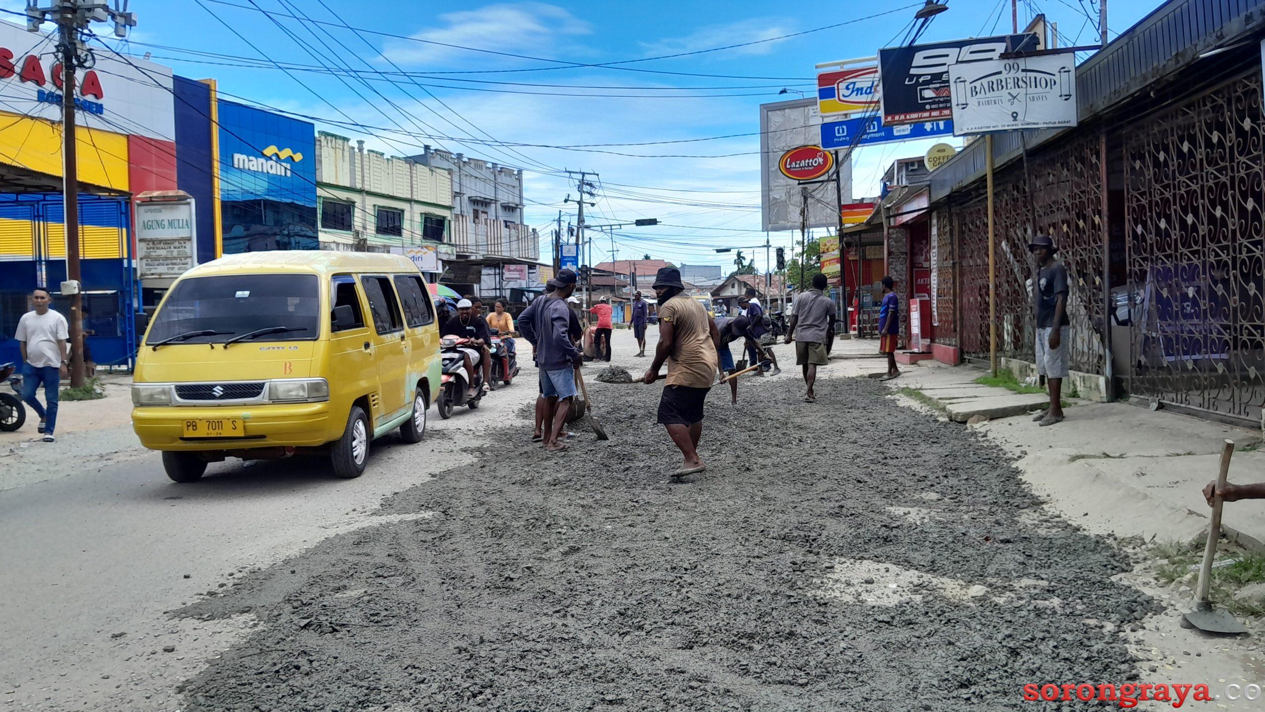 SORONG, sorongraya.co – Sejumlah Pemuda Saoka, Rufei dan Kampung Baru melakukan aksi sosial, dengan menimbun jalan berlubang yang terletak sekitar traffic lights atau lampu pengatur lalu lintas di Rufei. Aksi tersebut mendapat beragam pujian dari pengguna jalan.