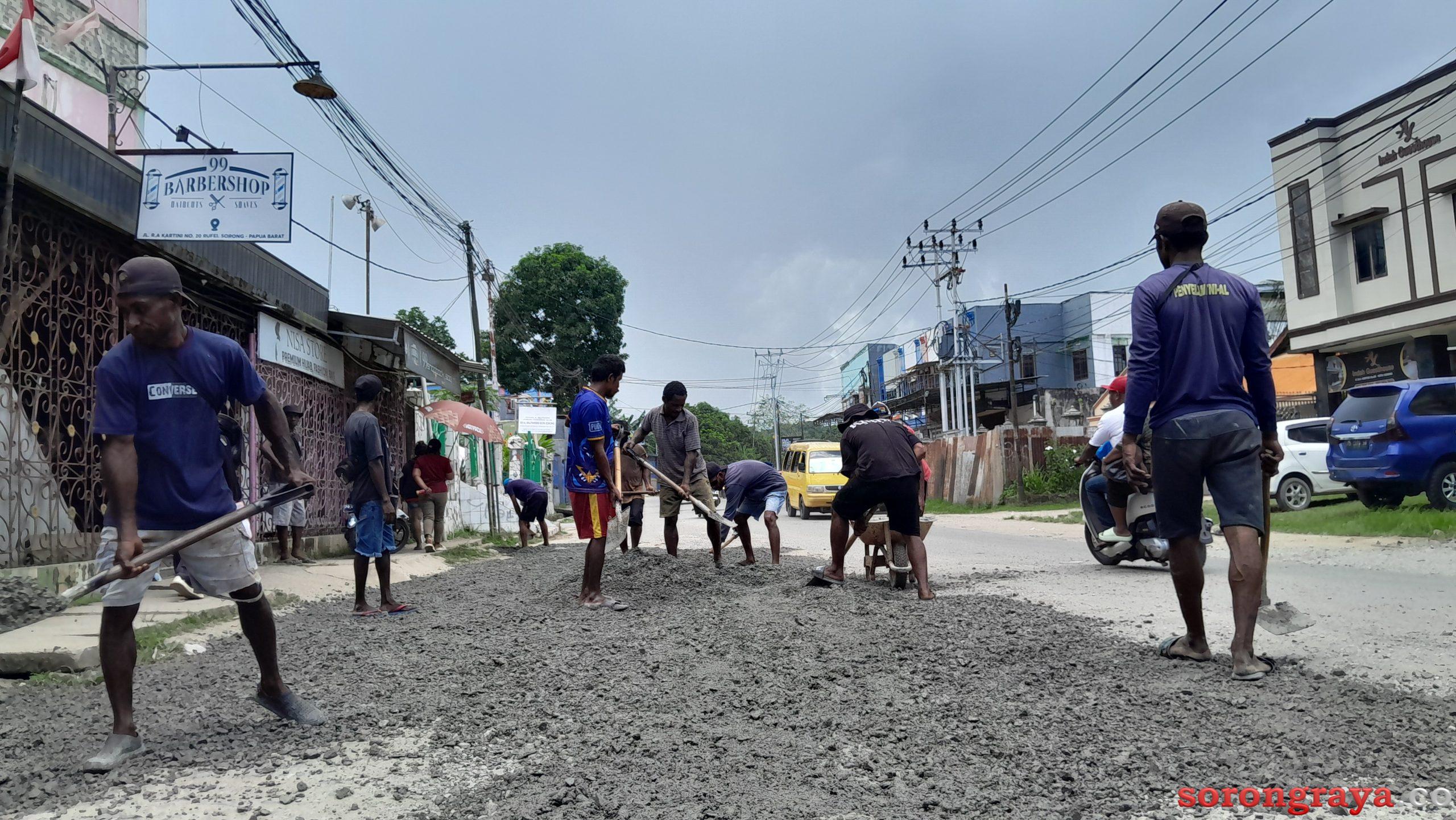 SORONG, sorongraya.co – Sejumlah Pemuda Saoka, Rufei dan Kampung Baru melakukan aksi sosial, dengan menimbun jalan berlubang yang terletak sekitar traffic lights atau lampu pengatur lalu lintas di Rufei. Aksi tersebut mendapat beragam pujian dari pengguna jalan.