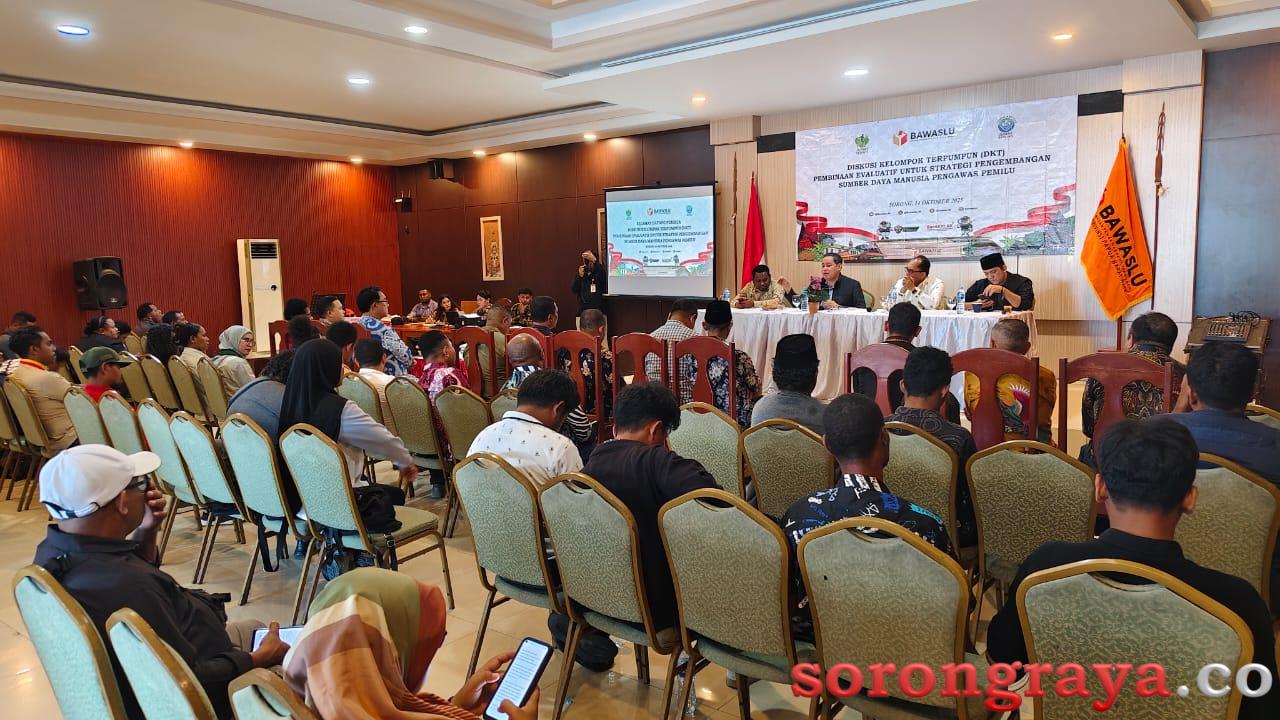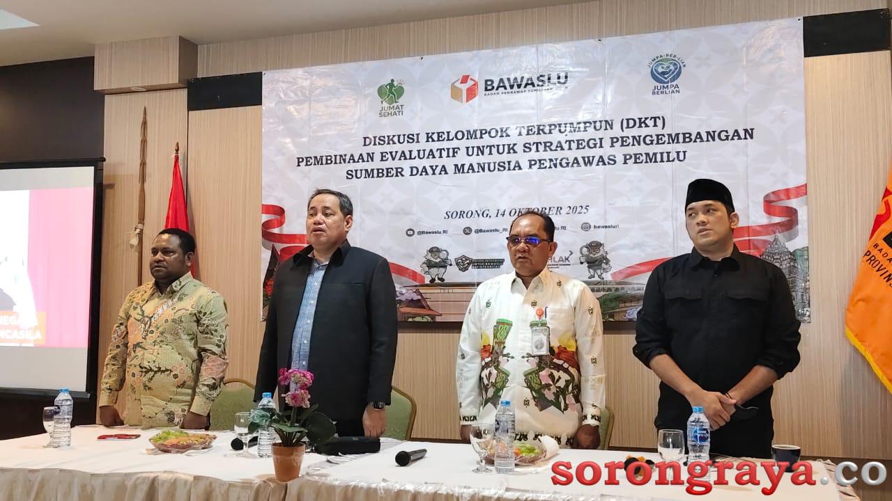 SORONG, sorongraya.co- Badan Pengawas Pemilu (Bawaslu) Diskusi Kelompok Terumpun (DKT) Pembinaan Evaluasi Untuk Strategi pembangunan sumber daya manusia pengawas Pemilu, penguatan terhadap peran pengawas pemilu melalui dua bentuk evaluasi penting. Kegiatan tersebut merupakan bagian dari upaya strategis dalam pembinaan dan pengembangan sumber daya manusia (SDM) pengawas pemilu di berbagai daerah, termasuk di Sorong, Bertempat di Sorong, 14 Oktober 2025.