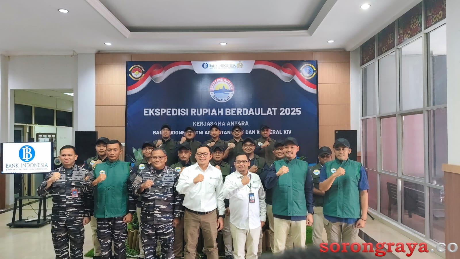 SORONG,sorongraya.co – Bank Indonesia Papua Barat bersama TNI Angkatan Laut secara resmi mengedarkan uang layak edar di daerah Terdepan, Terluar dan Terpencil atau 3T. Kegiatan ini ditandai dengan melepas Tim Ekspedisi Rupiah Berdaulat 2025 dari Kota Sorong untuk melaksanakan layanan kas keliling, dan edukasi di wilayah Terdepan, Terluar, dan Terpencil di Provinsi Papua Barat Daya.
