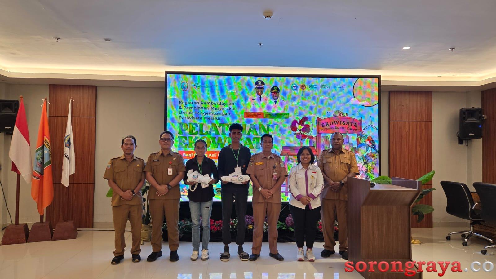 SORONG,sorongraya.co-Pemerintah Provinsi Papua Barat Daya melalui Dinas Kepemudaan, Olahraga, Pariwisata, dan Ekonomi Kreatif menggelar kegiatan Pemberdayaan dan Pembinaan Masyarakat untuk Pengembangan Pariwisata melalui Pelatihan Ekowisata bagi Orang Asli Papua (OAP) Pelatihan ini berlangsung selama tiga hari, 9–11 Desember 2025, bertempat di Aimas Hotel.