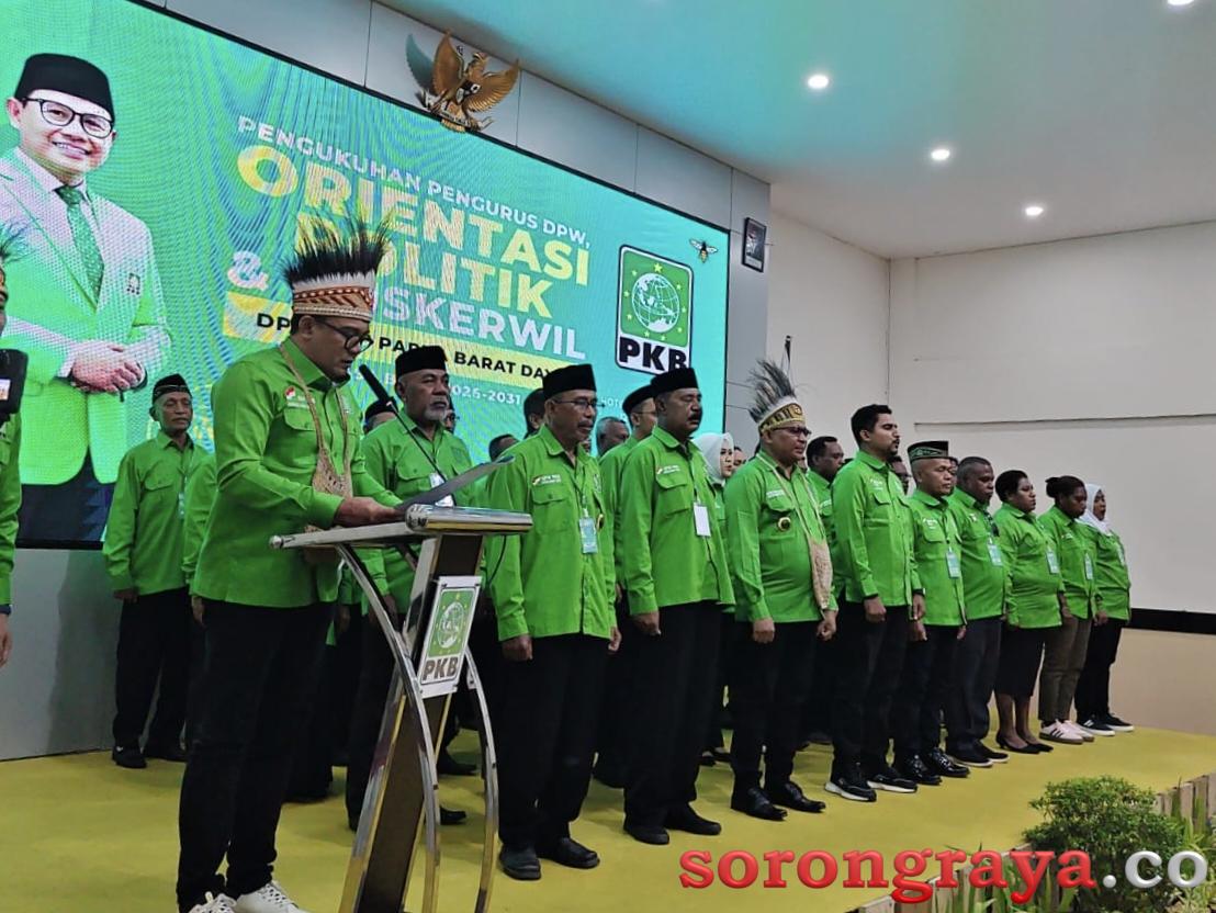 SORONG,sorongraya.co-Pelantikan Dewan Pengurus Wilayah (DPW) Partai Kebangkitan Bangsa (PKB) Papua Barat Daya berlangsung khidmat dan penuh semangat kebersamaan di Kota Sorong, Papua Barat Daya. Prosesi pelantikan dipimpin langsung oleh Ketua DPP PKB Bidang Komunikasi dan Informasi Teknologi, Ahmad Iman Syukri. Kamis, (12/2/2026).