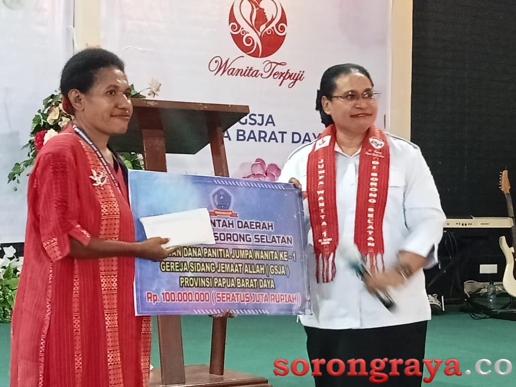 SORSEL,sorongraya.co – Pemerintah Kabupaten Sorong Selatan (Sorsel) memberikan bantuan keagaamn dana sebesar Rp100 juta kepada panitia pelaksana kegiatan Jumpa Wanita I Gereja Sidang Jemaat Allah se-Provinsi Papua Barat Daya yang diselenggarakan di Kabupaten Sorong Selatan. 5 Juli 2025.