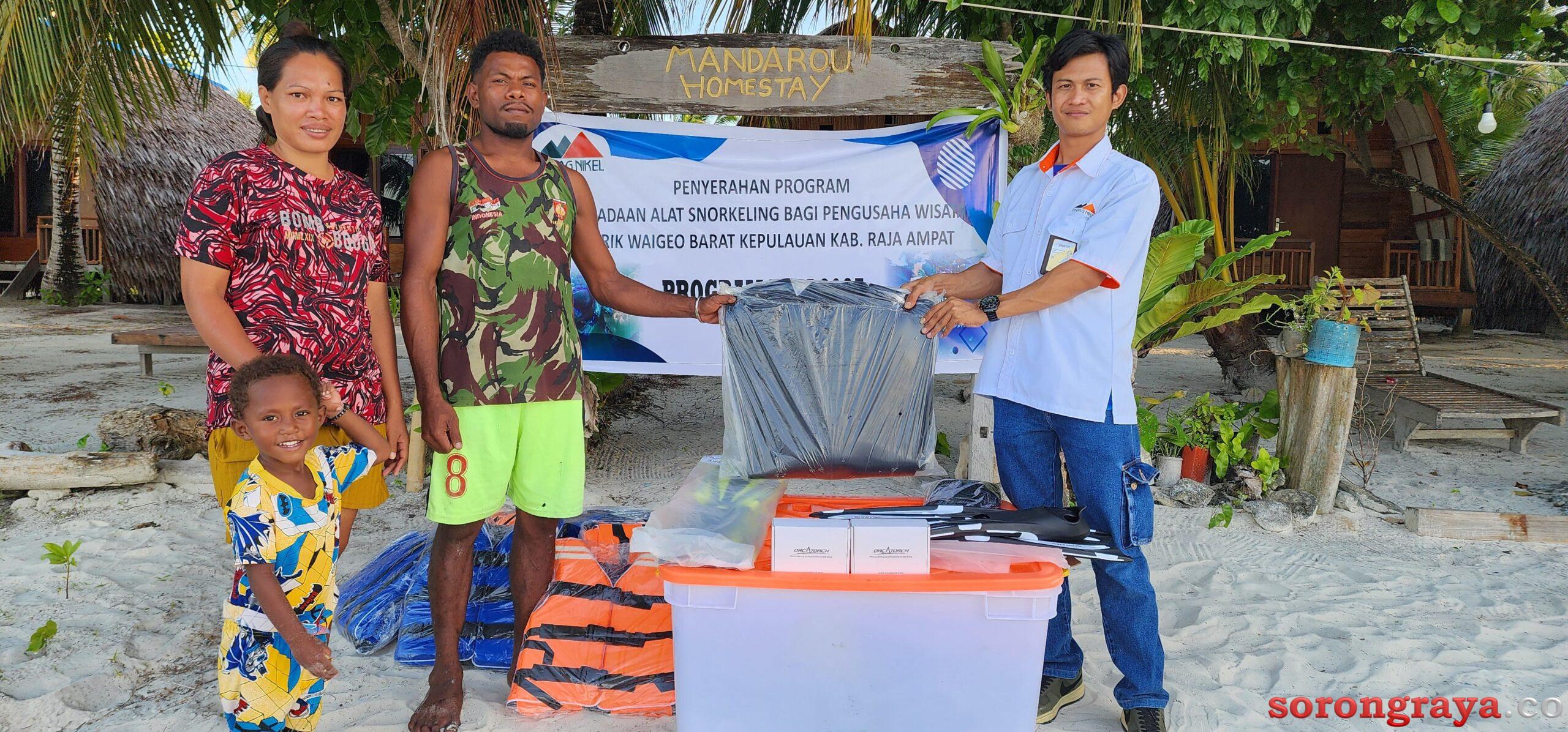 RAJAAMPAT, sorongraya.co– Dalam upaya mendorong pariwisata dan ekonomi lokal, PT Gag Nikel menyalurkan bantuan alat snorkeling kepada para pengusaha homestay di empat pulau wisata yang berada di Distrik Waigeo Barat Kepulauan, Kabupaten Raja Ampat. Rabu, 23 Juli 2025.