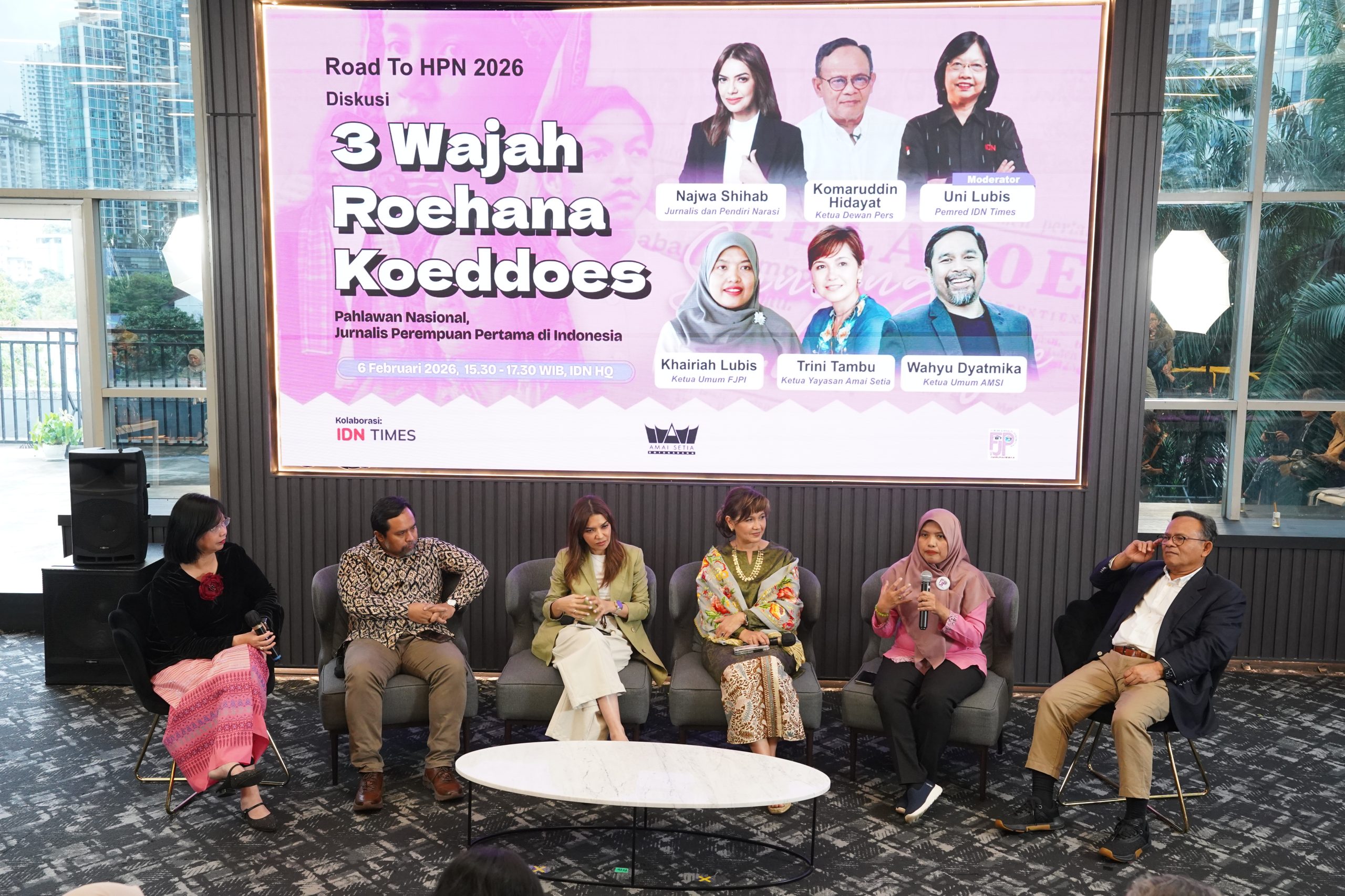 JAKARTA,sorongraya.co-Dalam rangka Hari Pers Nasional (HPN) 2026, Forum Jurnalis Perempuan Indonesia (FJPI) berkolaborasi dengan IDN Times dan Yayasan Amai Setia menggelar diskusi bertajuk “3 Wajah Roehana Koeddoes”, Jumat (6/2/2026).