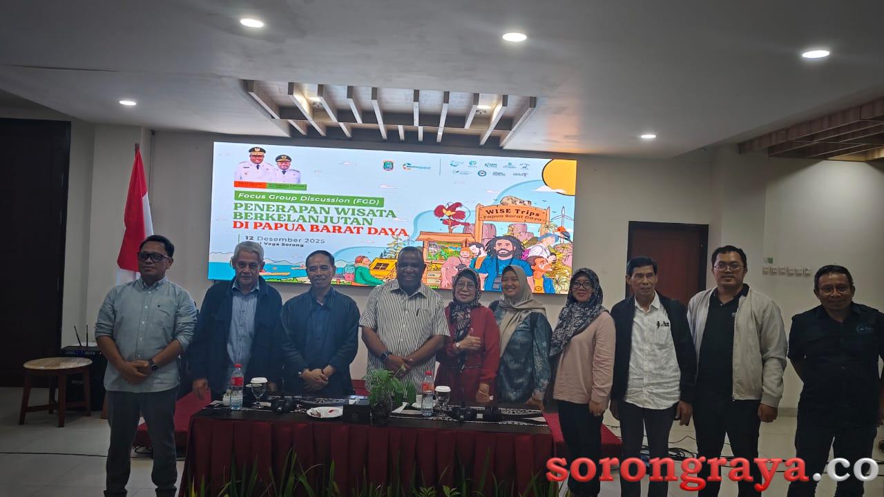 SORONG, sorongraya.co-Pemerintah Provinsi Papua Barat Daya melalui Dinas Kepemudaan, Olahraga, Pariwisata, dan Ekonomi Kreatif menyelenggarakan Focus Group Discussion (FGD) untuk membahas isu-isu lingkungan yang semakin nyata, seperti masalah sampah di darat dan laut, kerusakan terumbu karang, pencemaran air laut, serta penggunaan kendaraan darat dan laut yang berpotensi mencemari lingkungan. Kegiatan ini berlangsung di Vega Prime Hotel Sorong, Jumat (12/12/2025).