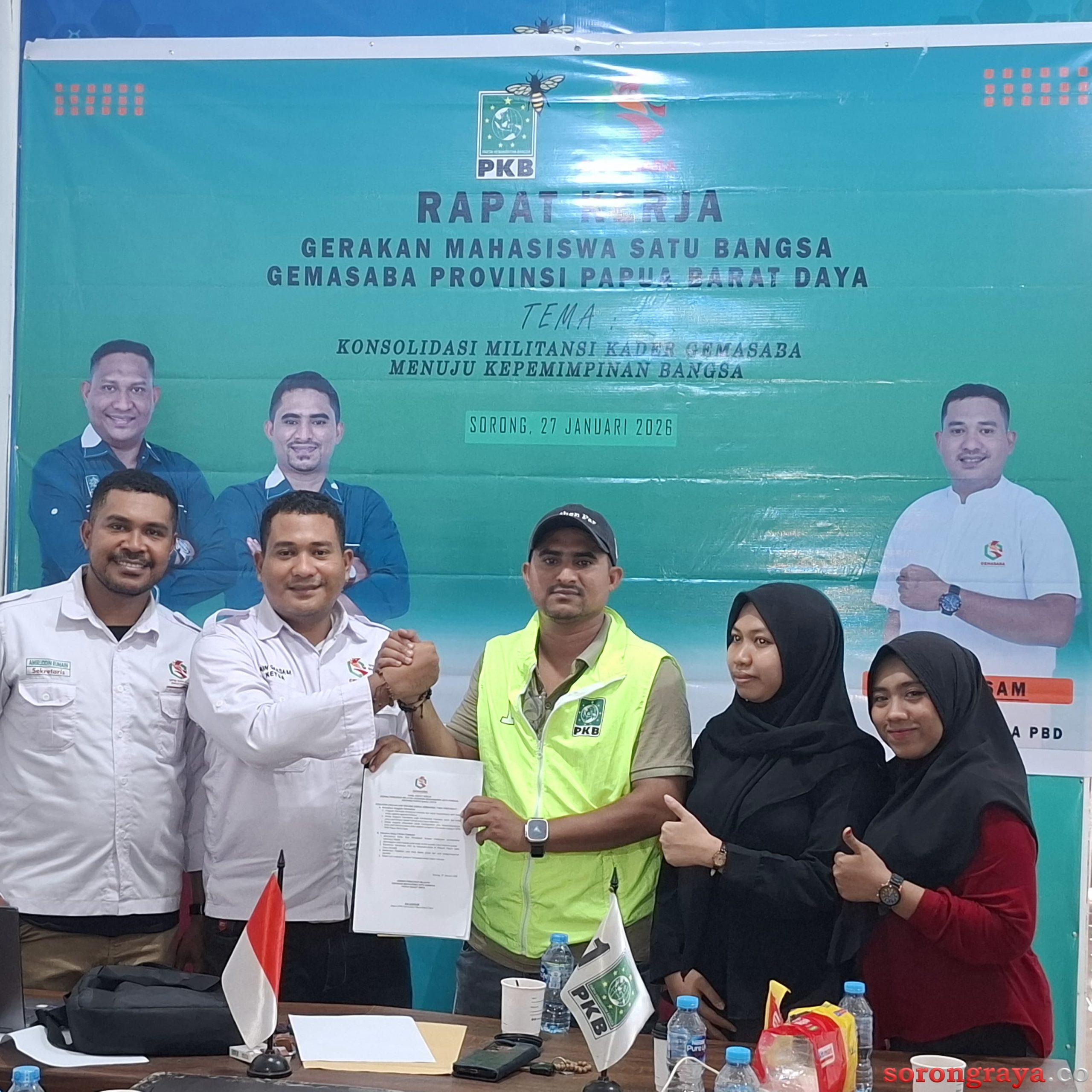 SORONG,sorongraya.co-Gerakan Mahasiswa Satu Bangsa (GEMASABA) Provinsi Papua Barat Daya gelar rapat Kerja berlangsung dengan khidmat dan penuh semangat kebersamaan. Bertempat di Kantor DPW PKB PBD, Selasa (27/1/2026)
