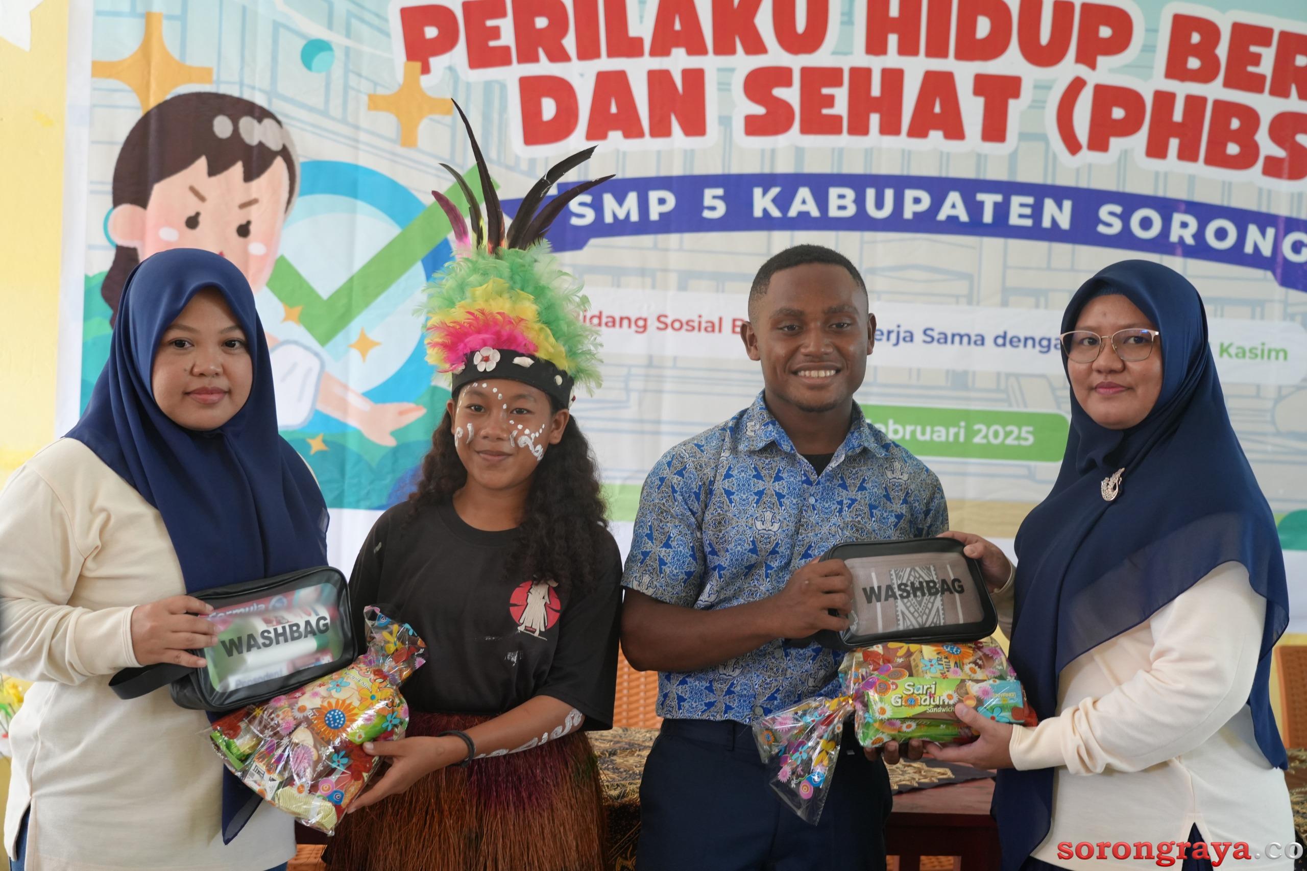 Selain itu, Kilang Kasim bersama PWP RU VII Kasim juga menyerahkan alat PHBS berupa 215 toiletries ke perwakilan SMP N 5 Kab. Sorong yang diterima oleh Jan Kristian Sumbung. Pihaknya mengucapkan rasa syukur dan apresiasi kepada Kilang Kasim dan PWP RU VII Kasim.