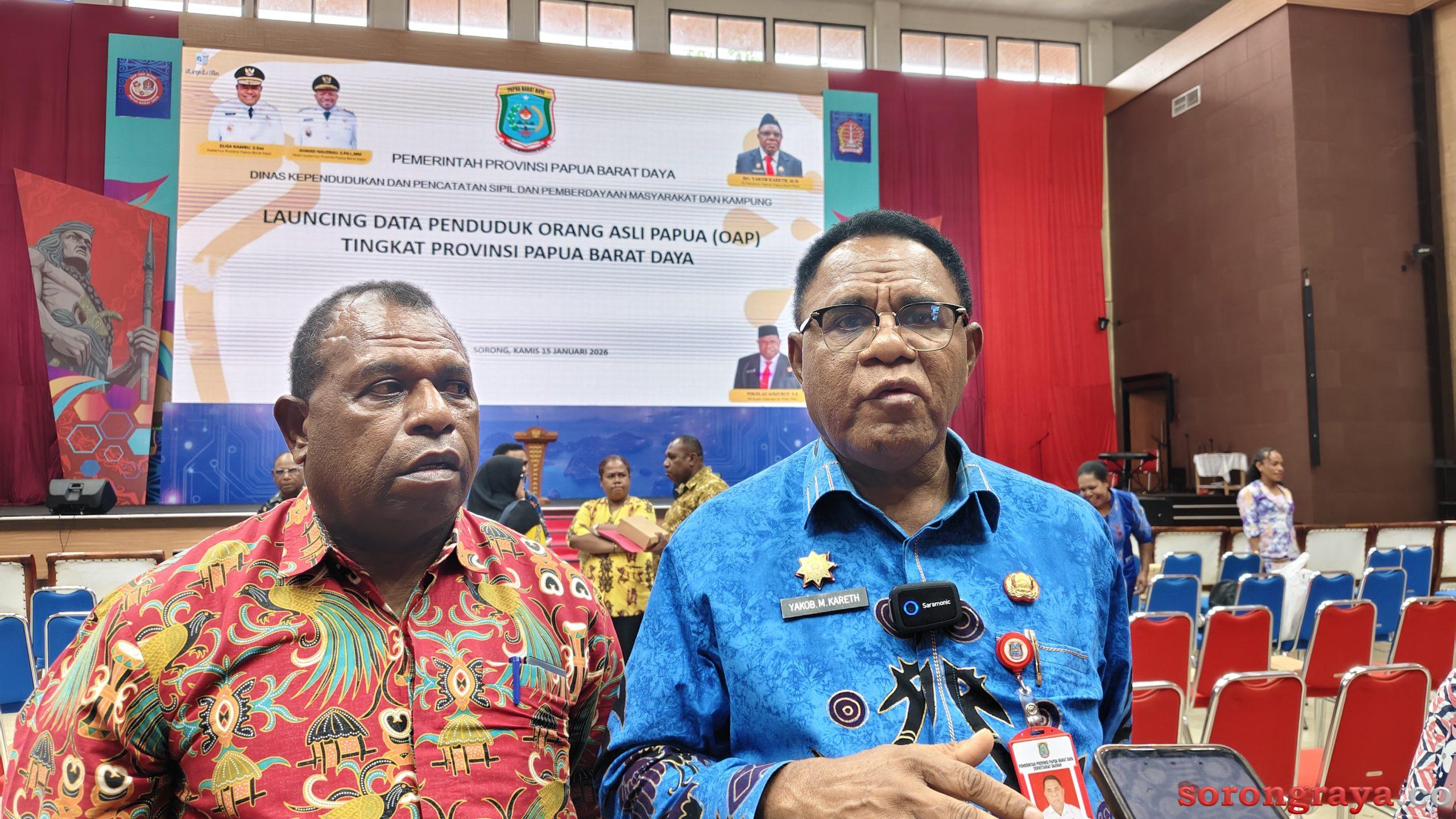 SORONG,sorongraya.co-Pemerintah resmi melauching data penduduk Orang Asli Papua (OAP) di tingkat Provinsi Papua Barat Daya. Bertempat di Gedung LJ. Kamis (15/1/2026).