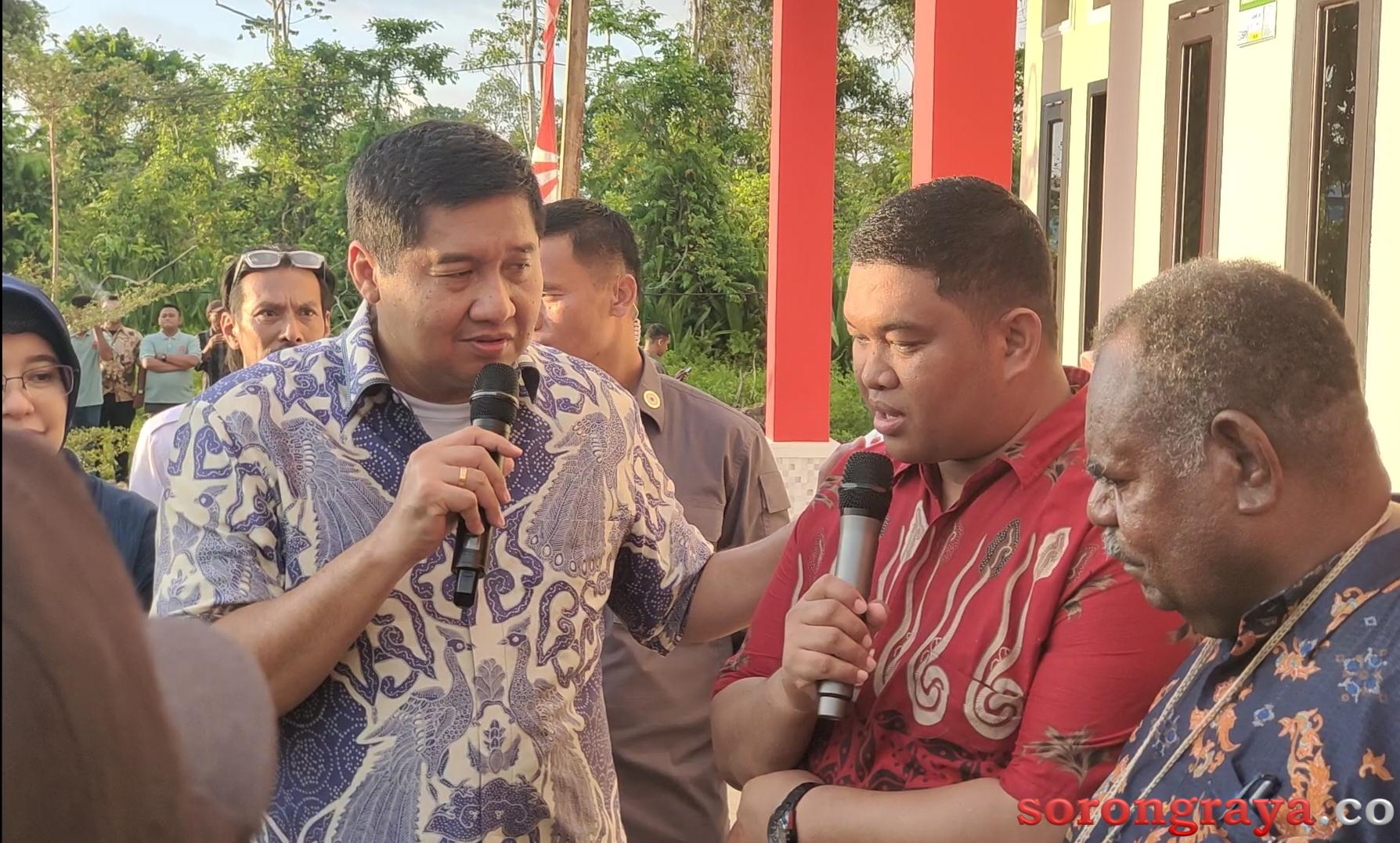Menteri PKP, Maruarar Sirait saat memberikan nilai kepada Bos Perumahan Residence Aqwa 6, Fadli, dihadapan Gubernur Papua Barat Daya. [foto: redaksi sr]