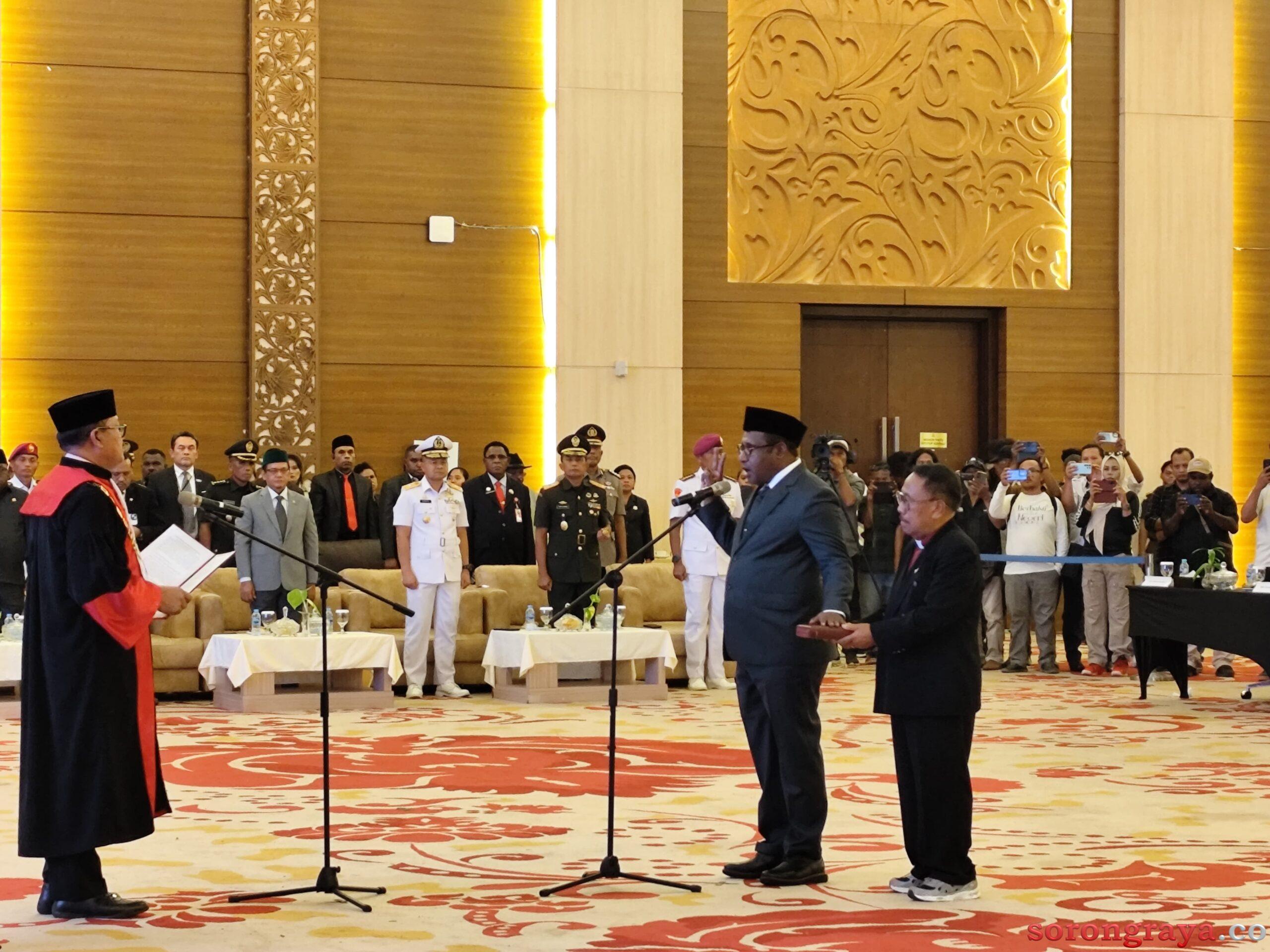 SORONG,sorongraya.co- Ketua Pengadilan Tinggi Negeri Papua Barat, Dr. Wayan Karya, secara resmi melantik Ortis Fernando Sagrim, sebagai Ketua Dewan Perwakilan Rakyat (DPR) Provinsi Papua Barat Daya untuk masa jabatan 2024–2029. digelar di Gedung Serba Guna Hotel ACC, Senin (28/7/2025).