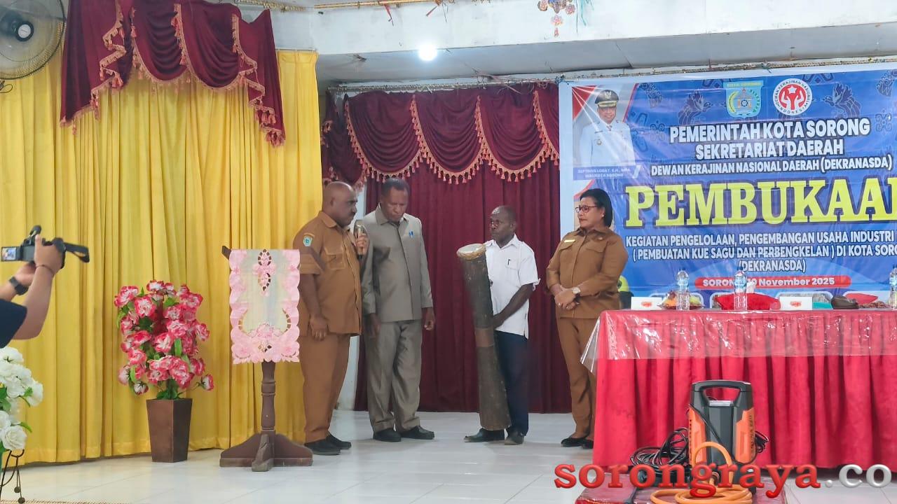 SORONG,sorongraya.co-Pemerintah Kota Sorong bekerja sama dengan Dewan Kerajinan Nasional Daerah (Dekranasda) Kota Sorong menggelar kegiatan Pelatihan Pengelolaan dan Pengembangan Usaha Industri Kecil, yang berfokus pada pelatihan pembuatan kue sagu dan keterampilan perbengkelan. Bertempat di Gedung YPK, Srnin (10/11/2025).