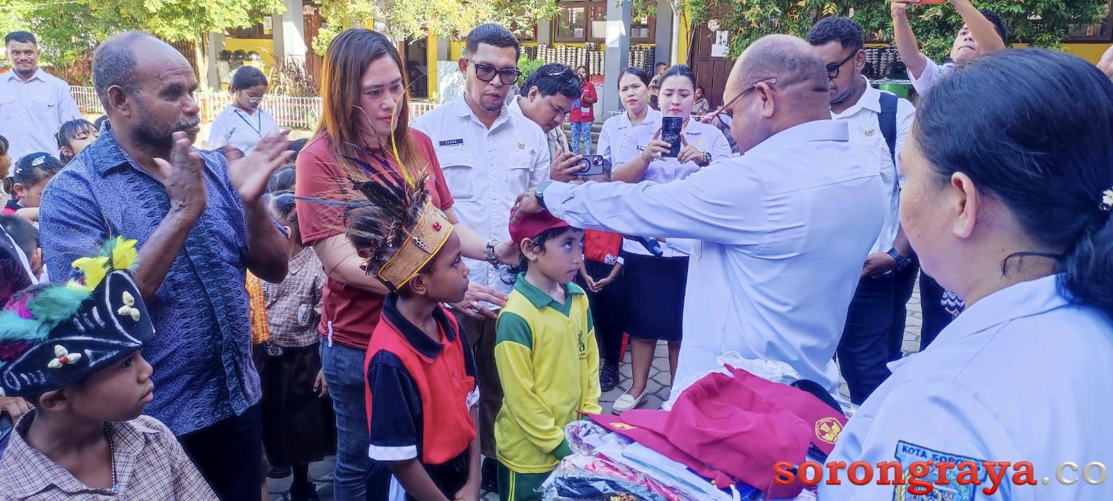 “Sekolah kami secara simbolis mewakili penyerahan seragam sekolah bantuan dari Pemerintah Kota Sorong, bantuan seragam ini ditujukan bagi siswa baru. Ada lima jenis seragam yang diberikan untuk murid kelas 1, Ini sangat membantu orang tua murid,” Pungkasnya.