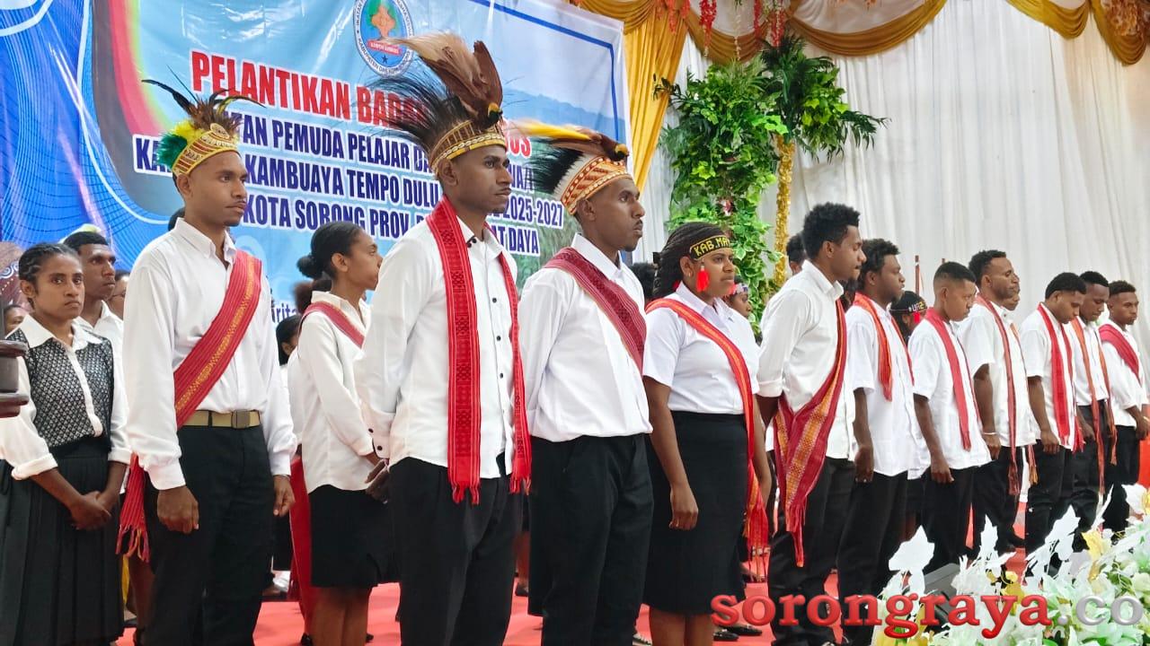 SORONG,sorongraya.co-Badan Pengurus Ikatan Pemuda Pelajar dan Mahasiswa/I (IPPM) Kampung Kambuaya Tempo Dulu periode 2025–2027 secara resmi dikukuhkan oleh Tokoh adat, Raja Kambuaya. Bertempat di Gedung Sirambe Kota Sorong, Sabtu (06/12/2025).