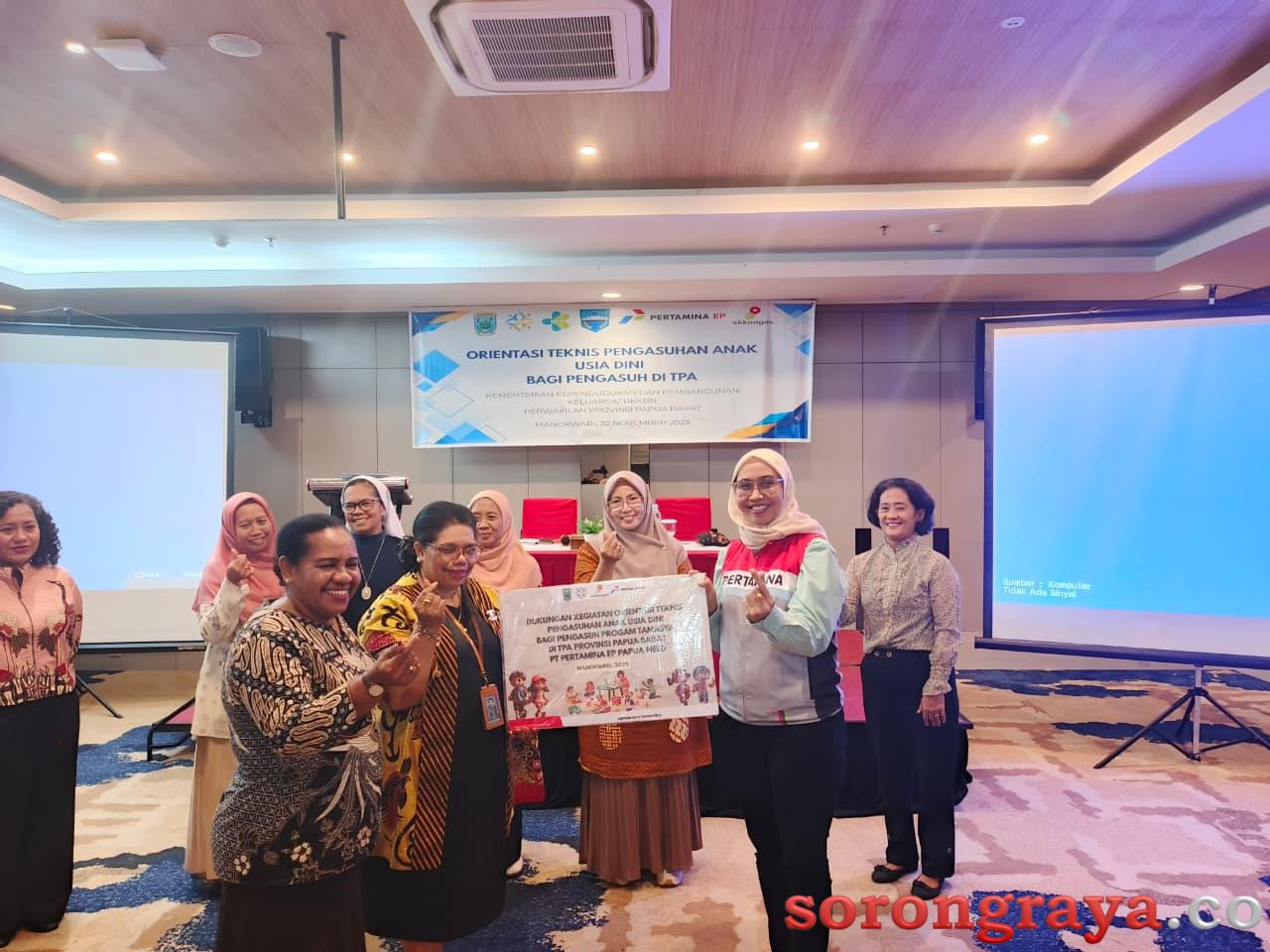 MANOKWARI,sorongraya.co-Pertamina EP Papua Field kembali menunjukkan komitmennya dalam mendukung peningkatan kualitas pengasuhan anak usia dini di Papua Barat. Pada Sabtu (22/11/2025), bertempat di Swiss-Belhotel Manokwari, Pertamina EP Papua Field menyerahkan bantuan fasilitas pendukung Orientasi Teknis Pengasuhan Anak Usia Dini untuk BKKBN Provinsi Papua Barat. Bantuan ini diperuntukkan bagi para pengasuh yang bertugas di Tempat Penitipan Anak (TPA) di wilayah Manokwari.