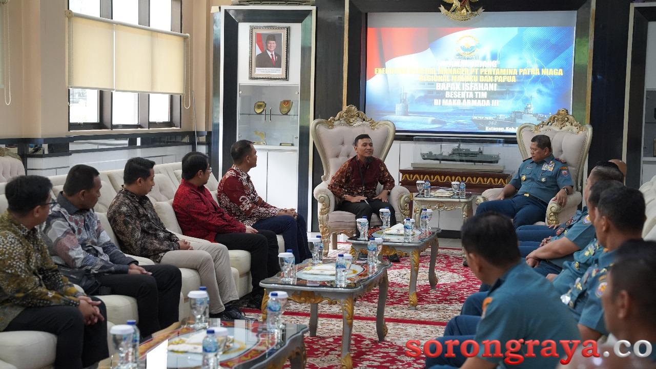 Kunjungan ini dipimpin langsung oleh Executive General Manager (EGM) Pertamina Patra Niaga Regional Papua Maluku Isfahani didampingi jajaran tim manajemen, dan diterima langsung oleh Panglima Komando Armada III Laksamana Muda TNI Hersan.