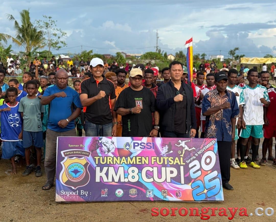 Pembukaan Turnamen futsal KM 8. Cup 1 ini berlangsung di Kompleks Kokoda KM. 8 Kota Sorong, Provinsi Papua Barat Daya diawali dengan sambutan Ketua LMA Kota Sorong Esau Gogoba itu dihadiri Kepala suku besar Immeko yang juga Wakil Bupati Sorong Selatan Yohan Bodori dan Ketua Pemuda Suku Kokoda Kota Sorong Ustad Narji Maripe.