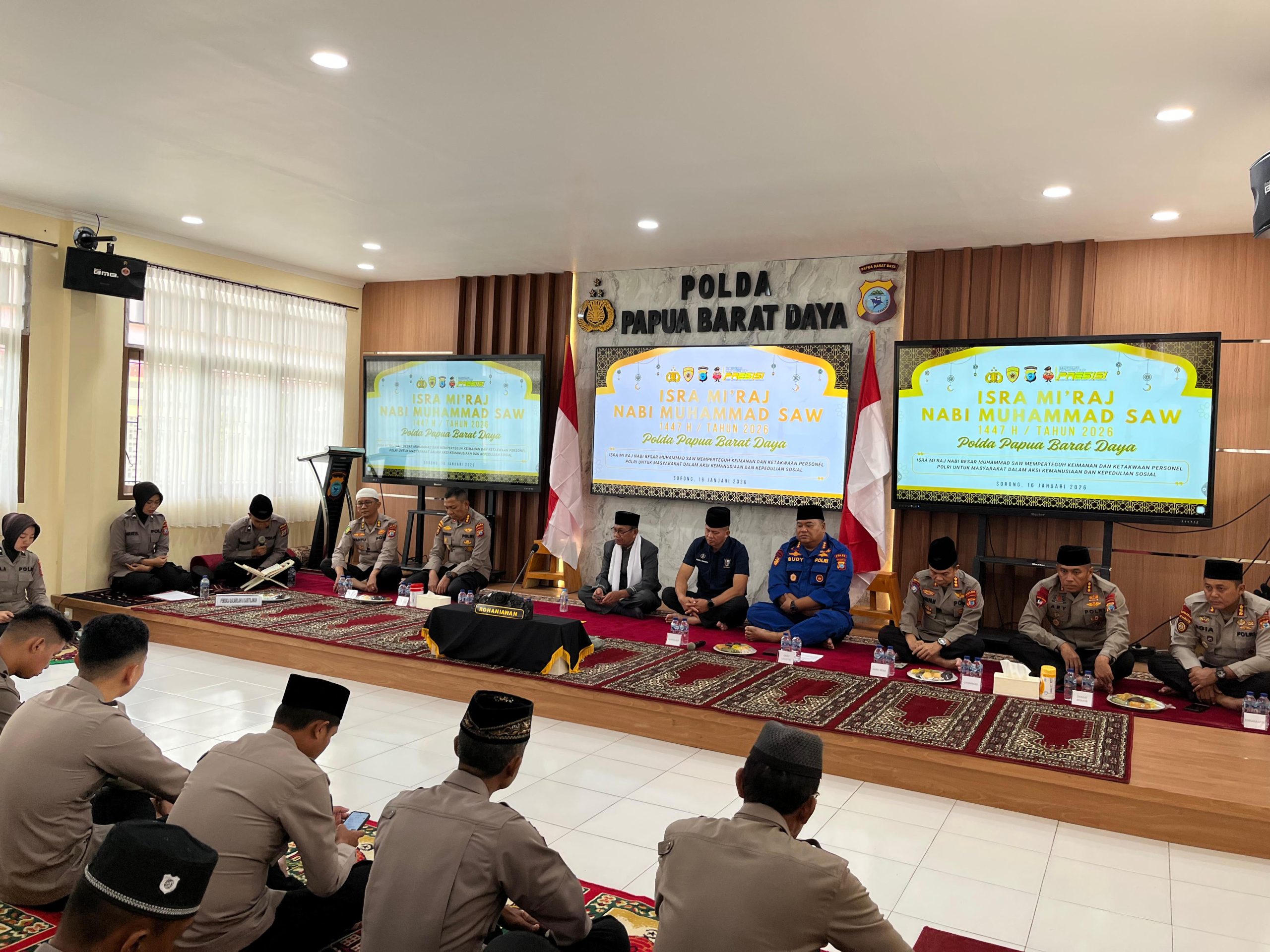 Peringatan Isra Miraj ini dipimpin oleh Ustadz H. Abdul Manan Fakaubun, S.Pd.I, serta dihadiri oleh para Pejabat Utama (PJU) Polda Papua Barat Daya dan jajaran personel Polri.