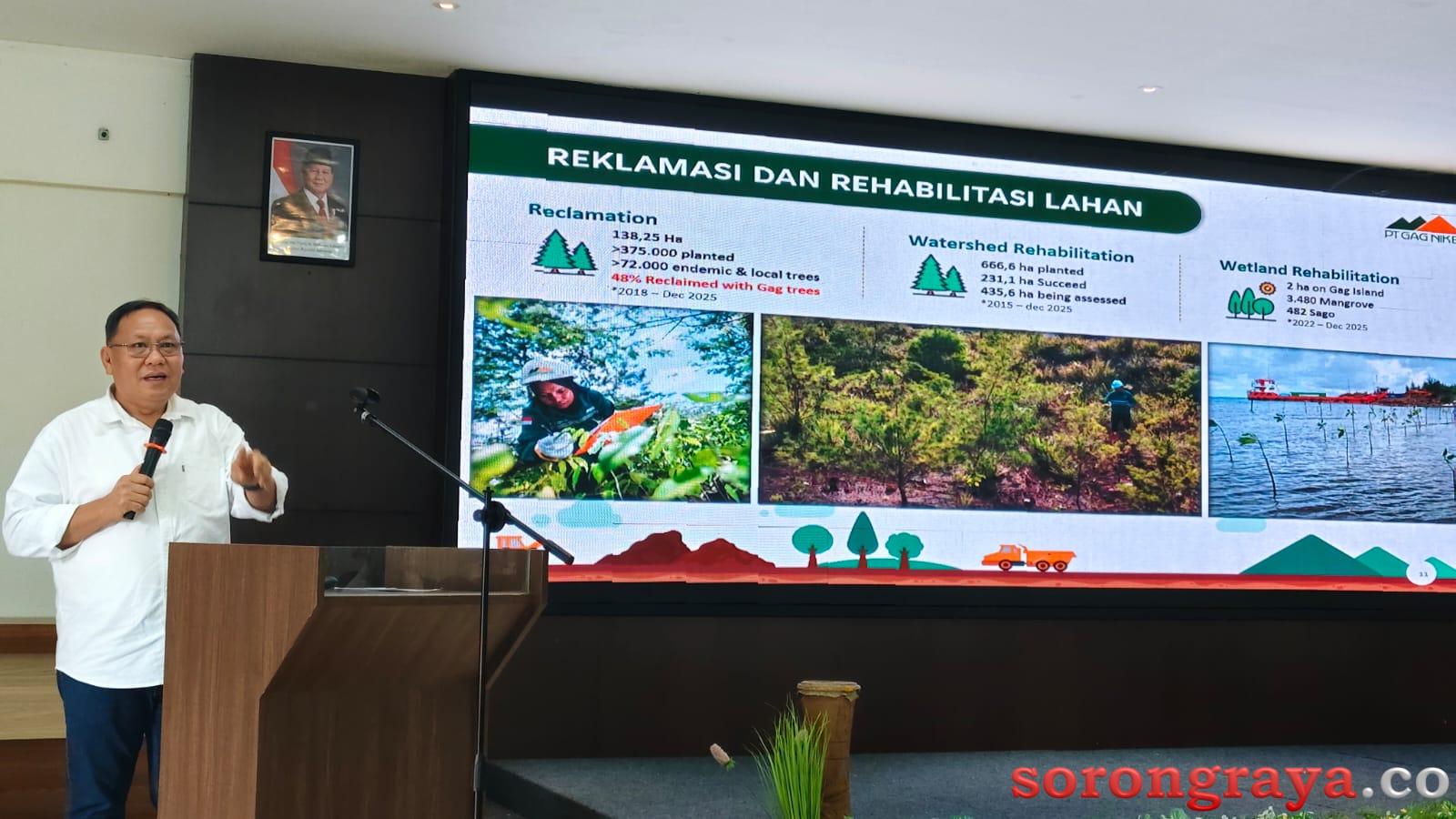 “Perusahaan juga menyiapkan lahan khusus bagi setiap tamu yang berkunjung untuk ikut serta dalam kegiatan penanaman pada area yang telah selesai ditambang dan ditata,”ujar Office Manager PT Gag Nikel, Ruddy Sumual, saat Rapat Koordinasi Eksternal kepada awak media dan LSM. Bertempat di ACC Aimas, Kamis (22/01/2026).