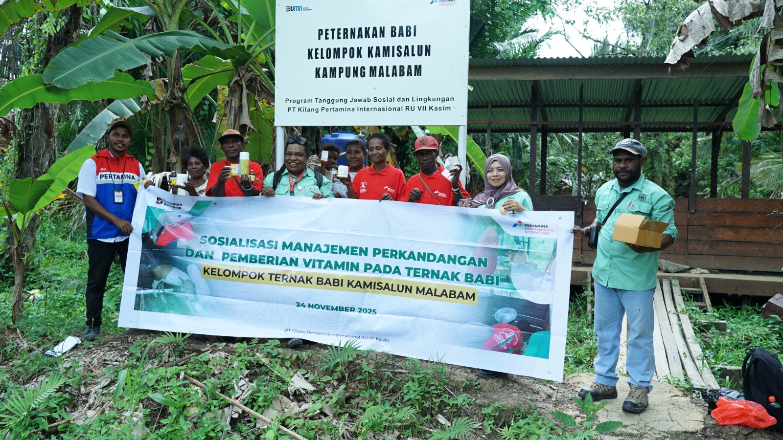 KASIM,sorongraya.co-PT Kilang Pertamina Internasional Refinery Unit VII Kasim terus mendukung pemberdayaan masyarakat, hal ini mengemuka dalam Pelatihan pembuatan pupuk organik serta Sosialisasi Manajemen Perkandangan dan Pemberian Vitamin pada ternak babi yang dilaksanakan di kampung Malabam, Senin (24/11/25)