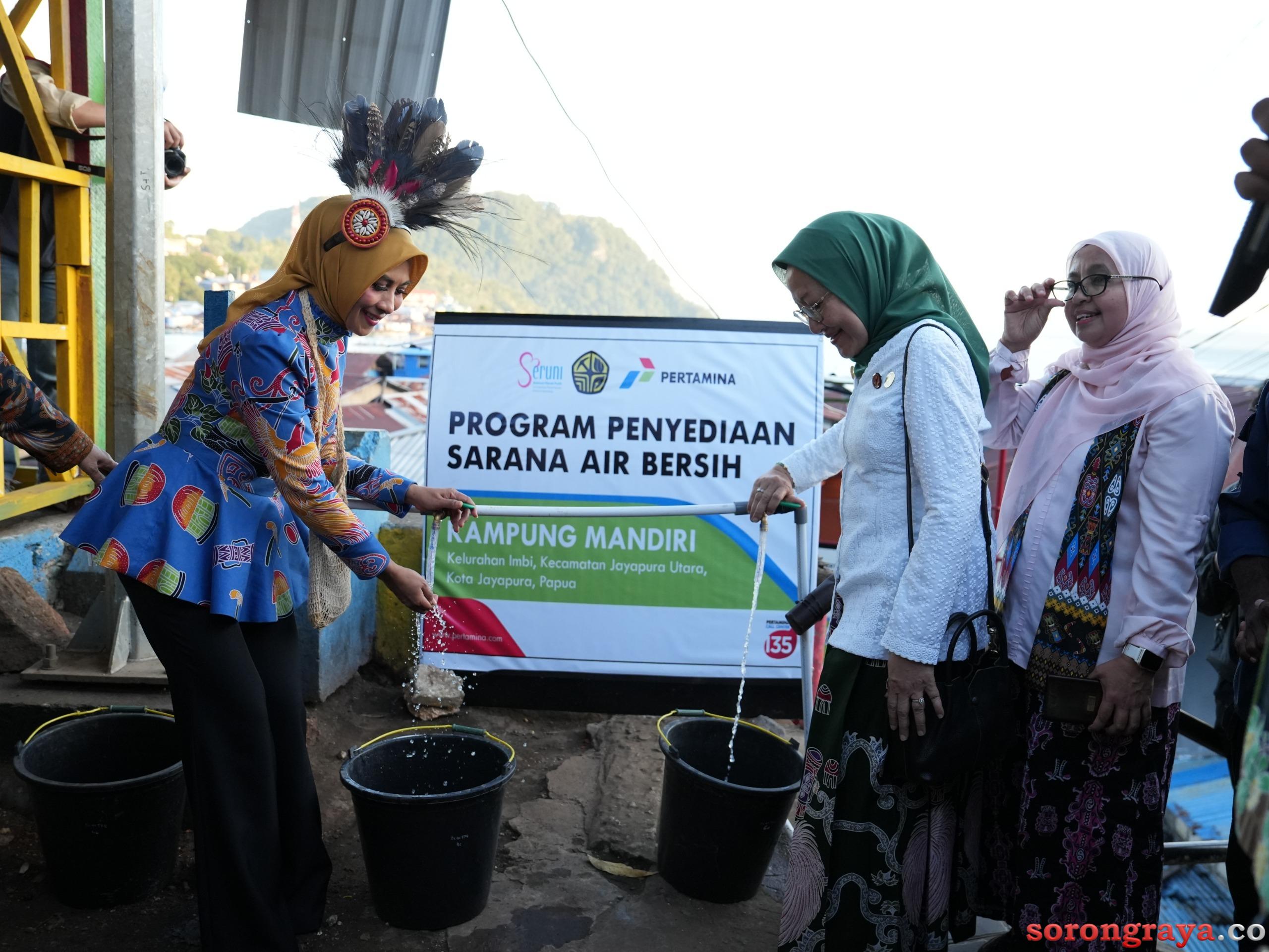 JAYAPURA,sorongraya.co- PT Pertamina (Persero), melalui Subholding Commercial & Trading PT Pertamina Patra Niaga berkolaborasi bersama Solidaritas Perempuan untuk Indonesia (SERUNI) Kabinet Merah Putih (KMP) dan Kementerian Energi dan Sumber Daya Mineral (ESDM) membuka akses air bersih di 3 titik di Provinsi Papua, yakni di Pasir Dua dan Imbi, Jayapura, serta di Kampung Mosso yang lokasinya berada di sekitar perbatasan Papua dan Papua Nugini.