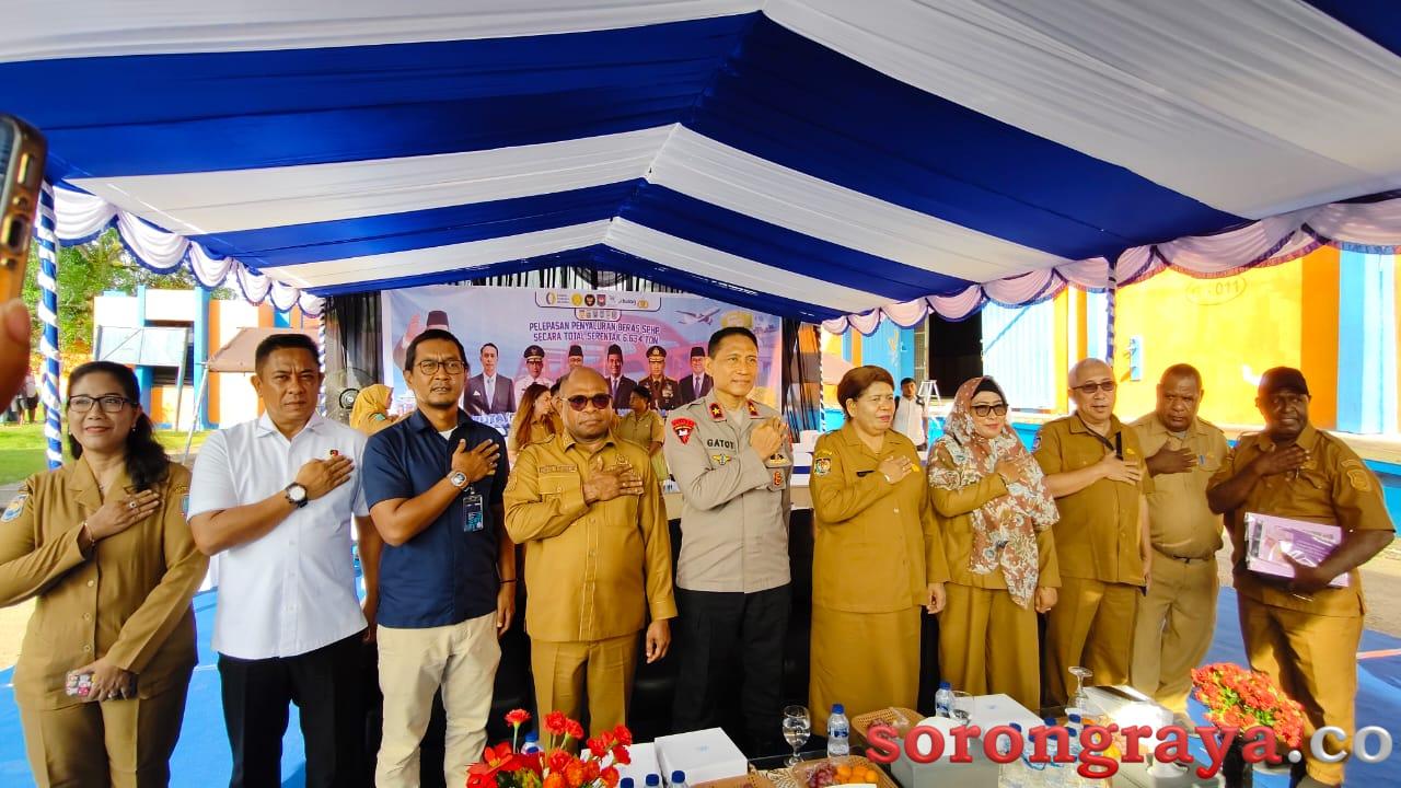 Kapolda Papua Barat Daya Brigjen Pol. Gatot Haribowo usai mengikuti daring bersama Menteri Pertanian dan Kapolri, secara simbolis melepas 57 ton beras SPHP.