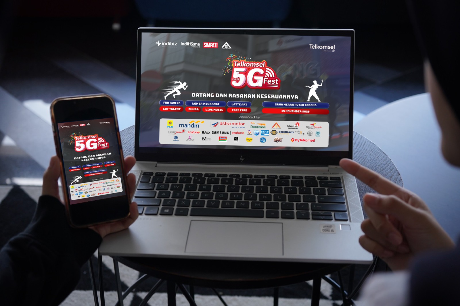 Event ini akan diselenggarakan oleh Telkomsel di area Graha Merah Putih Kota Sorong pada 15 November 2025, menghadirkan beragam kegiatan seperti Fun Run 5K, Zumba, lomba mewarnai anak, Telkomsel Got Talent, turnamen e-sport Free Fire, dan kompetisi Latte Art.