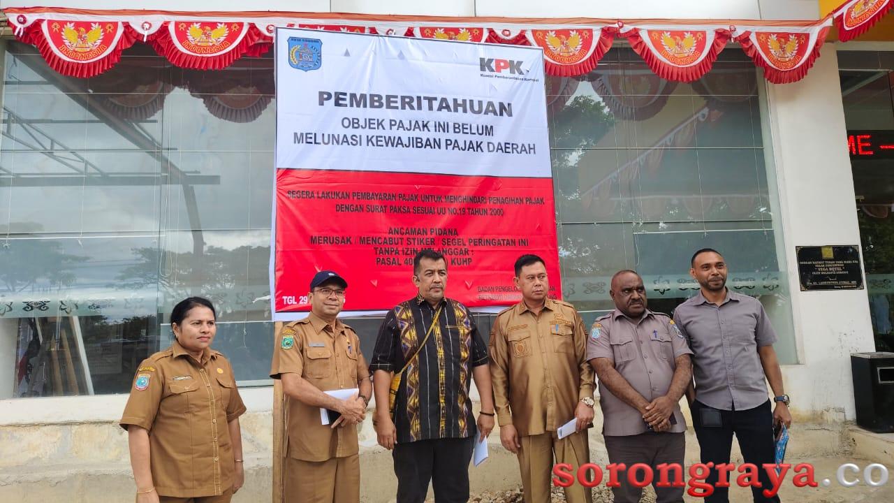 Pantauan sorongraya.co Kepala Satuan Tugas Koordinasi dan Supervisi Wilayah V Komisi Korupsi (KPK), Dian Patria bersama Wakil Wali Kota, Anshar Karim mendatangi Vega Hotel dan langsung melakukan pemasangan plang KPK.