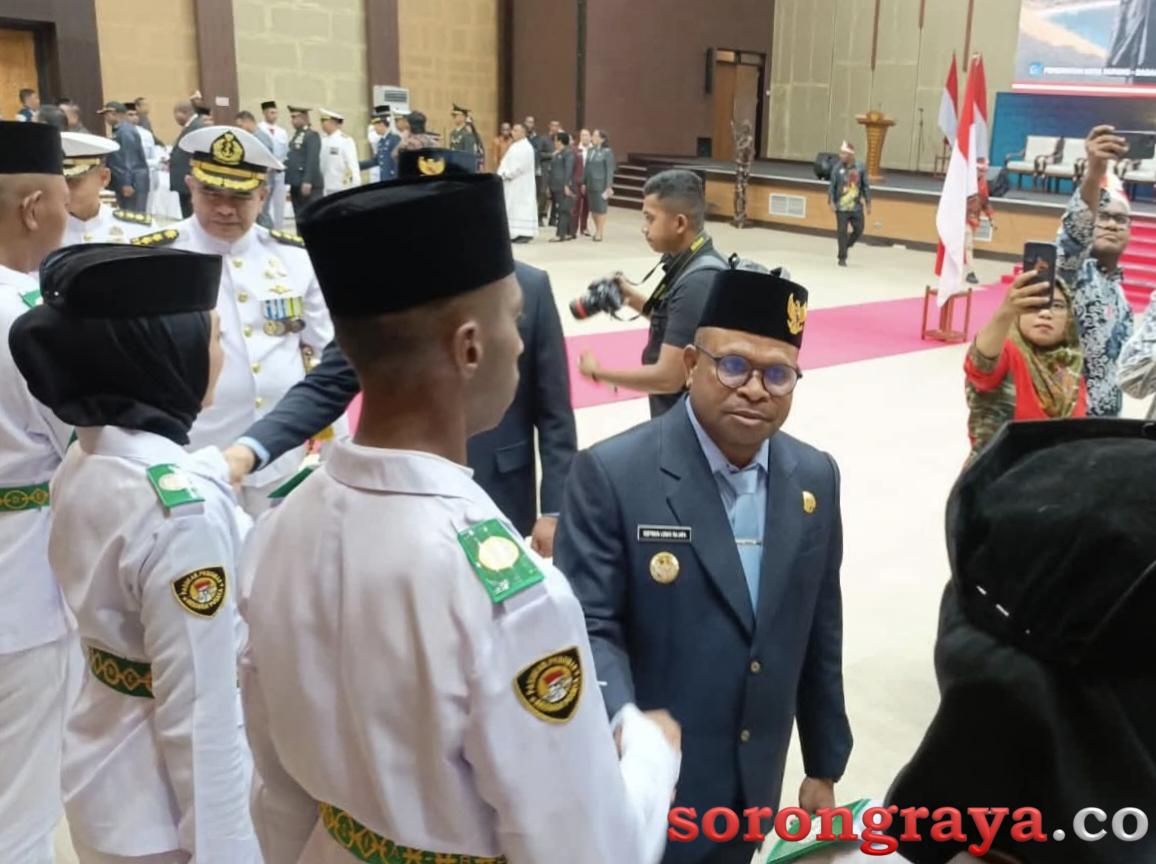 SORONG, sorongraya.co – Wali Kota Sorong, Septinus Lobat, secara resmi mengukuhkan 40 anggota Pasukan Pengibar Bendera Pusaka (Paskibraka) yang akan bertugas pada upacara peringatan Hari Ulang Tahun (HUT) ke-80 Kemerdekaan Republik Indonesia, 17 Agustus 2025. Pengukuhan dilaksanakan di Gedung Lambert Jitmau, Jumat malam, 15 Agustus 2025.