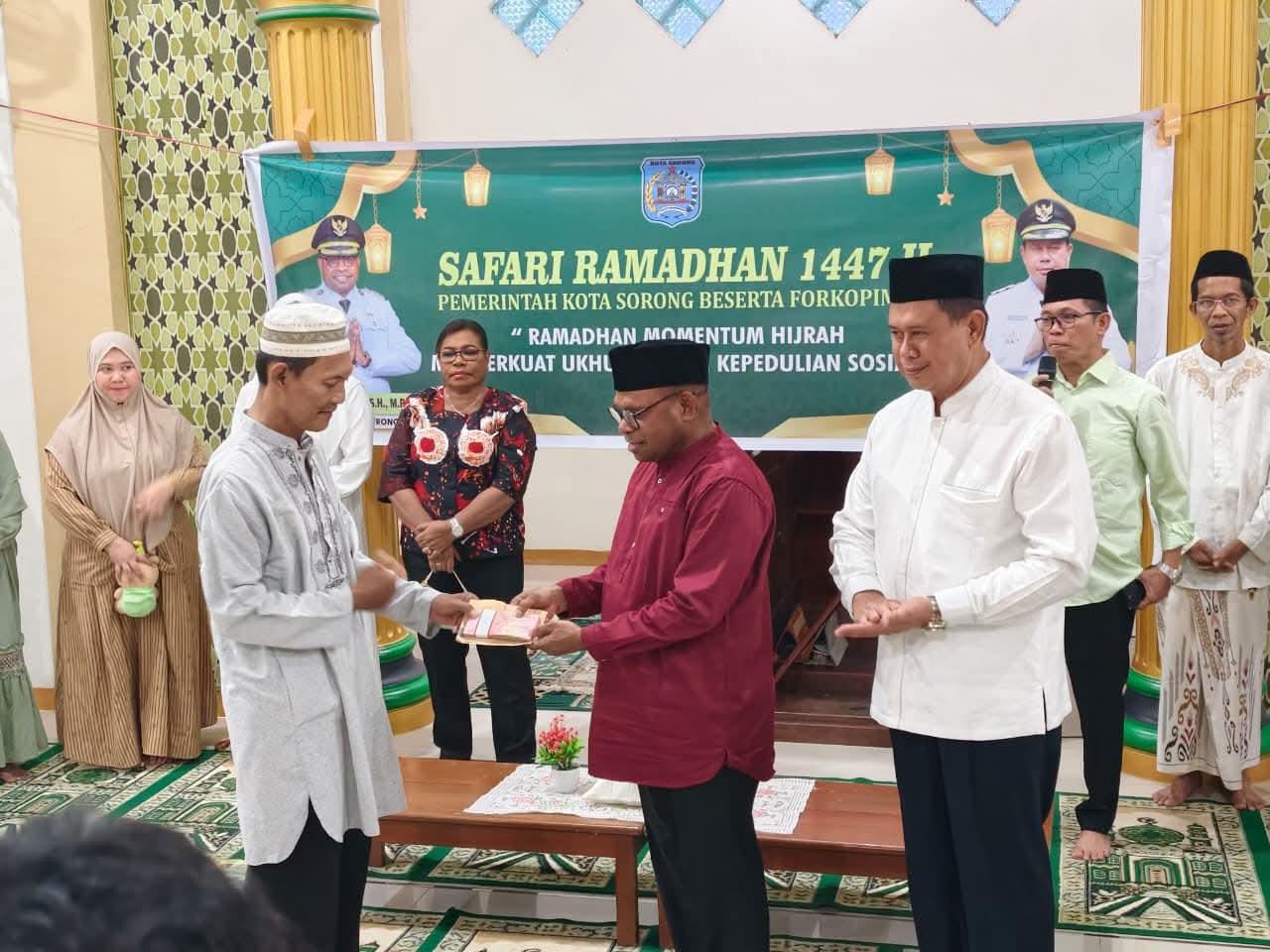 Pada kunjungan tersebut, Wali Kota dan Wakil Wali Kota Sorong juga menyerahkan bantuan kepada pengurus masjid berupa dana sebesar Rp10.000.000 serta bantuan beras sebanyak 300 kilogram. Bantuan tersebut diberikan sebagai bentuk dukungan Pemerintah Kota Sorong terhadap kegiatan keagamaan serta kebutuhan jamaah masjid.