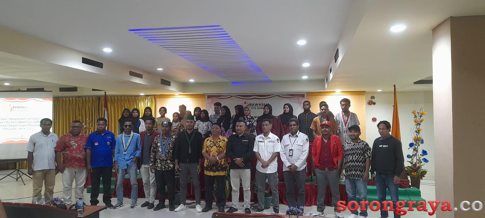 SORONG, sorongraya.co – Badan Pengawas Pemilu Kota Sorong menggelar sosialisasi partisipatif dengan melibatkan organisasi kepemudaan dan kemahasiswaan untuk turut serta mengawasi proses Pemilihan Kepala Daerah tahun 2024.