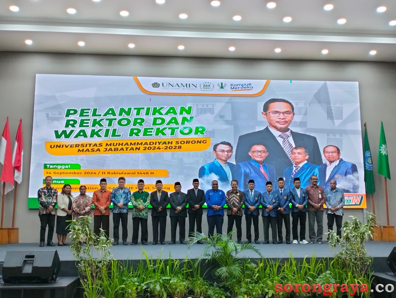 SORONG,sorongraya.co– Universitas Muhammadiyah Sorong (Unamin) memasuki babak baru dengan dilantiknya Rektor dan Wakil Rektor. Pelantikan tersebut berlangsung di Vega Hotel, Sabtu 14 September 2024.