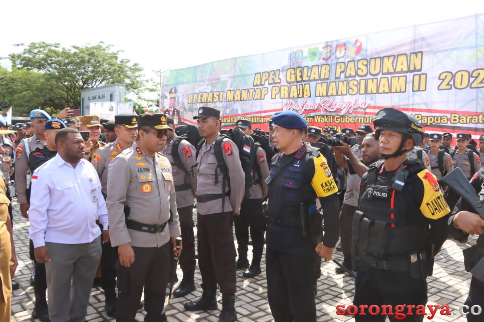 SORONG,sorongraya.co- Apel gabungan Mantap Praja Manainam II dalam rangka pengamanan Pemilihan Umum Kepala Daerah (Pemilukada) yang digelar di kantor Wali Kota Sorong, Senin, 26 Agustus 2024 melibatkan 1.789 personel TNI-Polri.