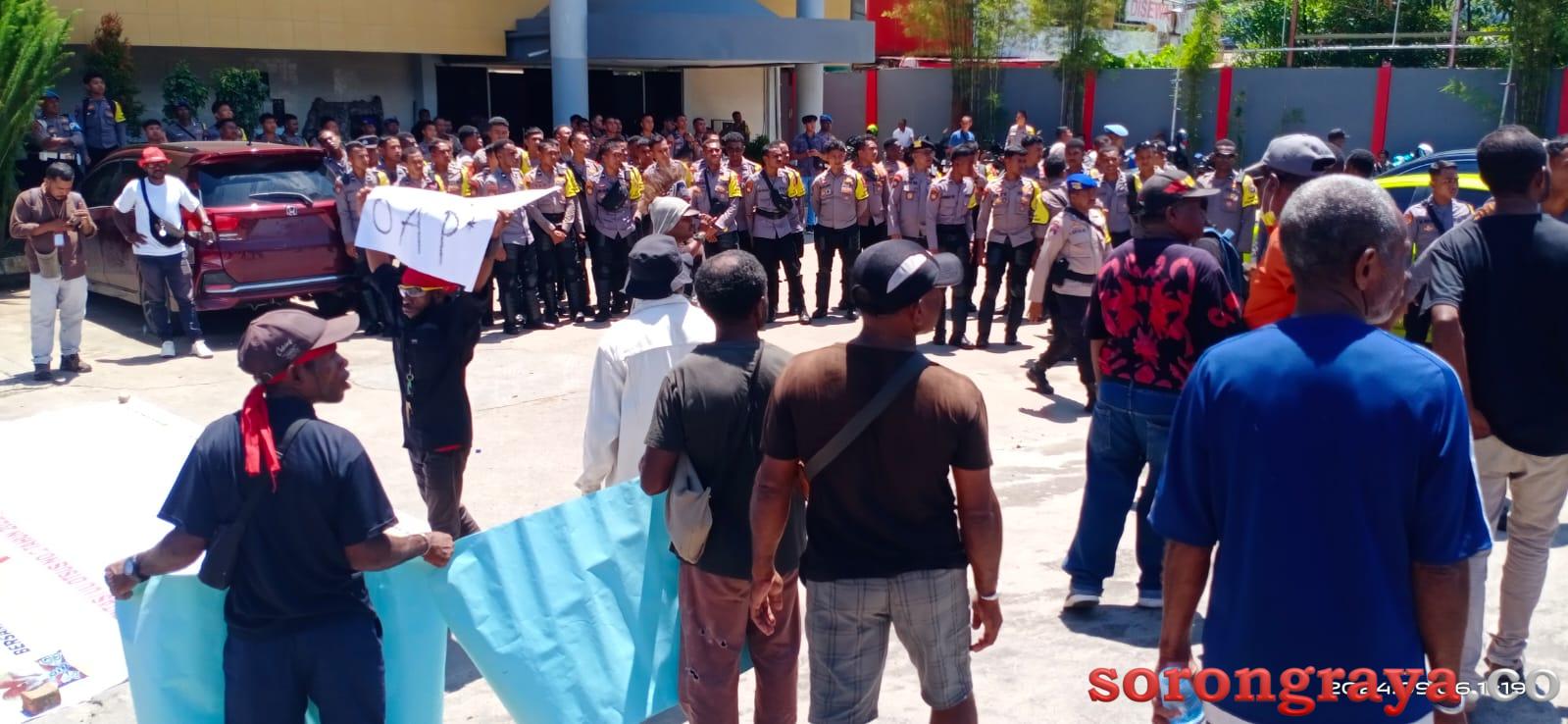 Kota Sorong,sorongraya.co- Sekelompok pemuda dan pemudi asli Papua menggelar unjuk rasa di halaman Hotel Mariat Sorong dalam rangka mengawal implementasi Otonomi Khusus (Otsus).