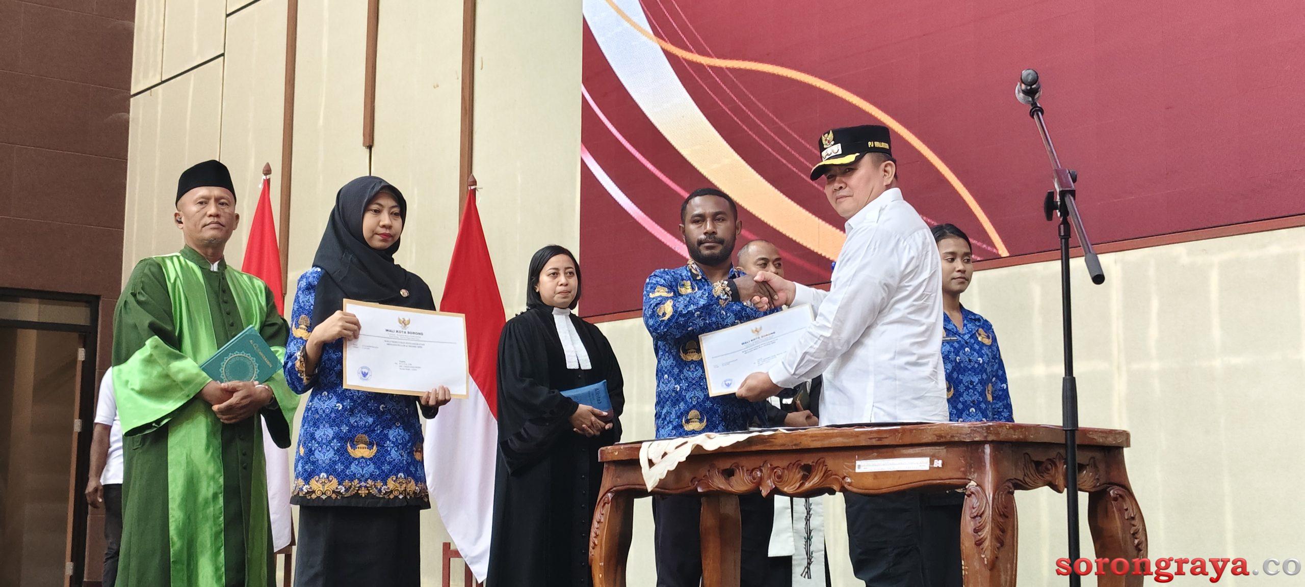 SORONG,sorongraya.co- Pengambilan Sumpah Janji dan Penyerahan Surat Keputusan Menjadi Pegawai Negeri Sipil di Lingkungan Pemerintah Kota Sorong dilaksanakan di Gedung Lambert Jitmau, Rabu, 11 September 2024.
