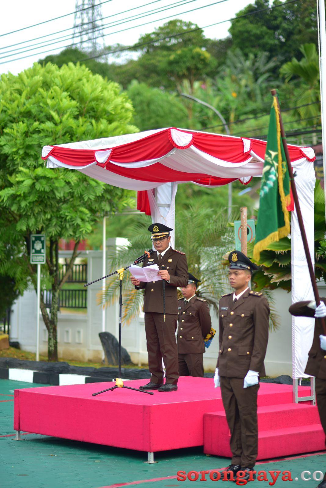 Upacara dipimpin langsung Kepala Kejaksaan Negeri Sorong Makrun dan dihadiri seluruh jajaran pegawai dan staf Kejari Sorong.