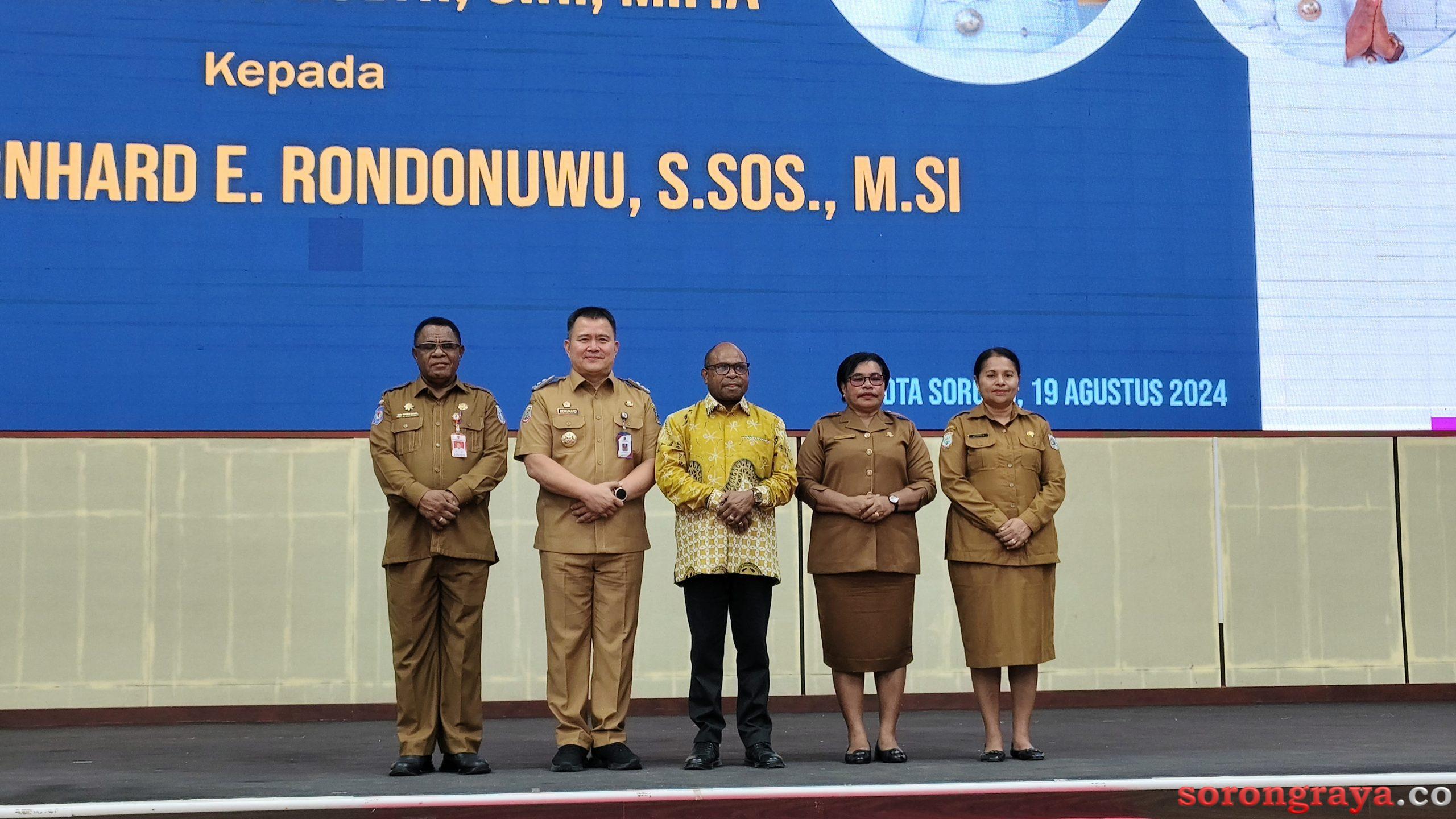 SORONG,sorongraya.co – Dalam suasana penuh haru, Septinus Lobat secara resmi menyerahkan jabatan Penjabat Wali Kota Sorong kepada Bernhard E. Rondonuwu.