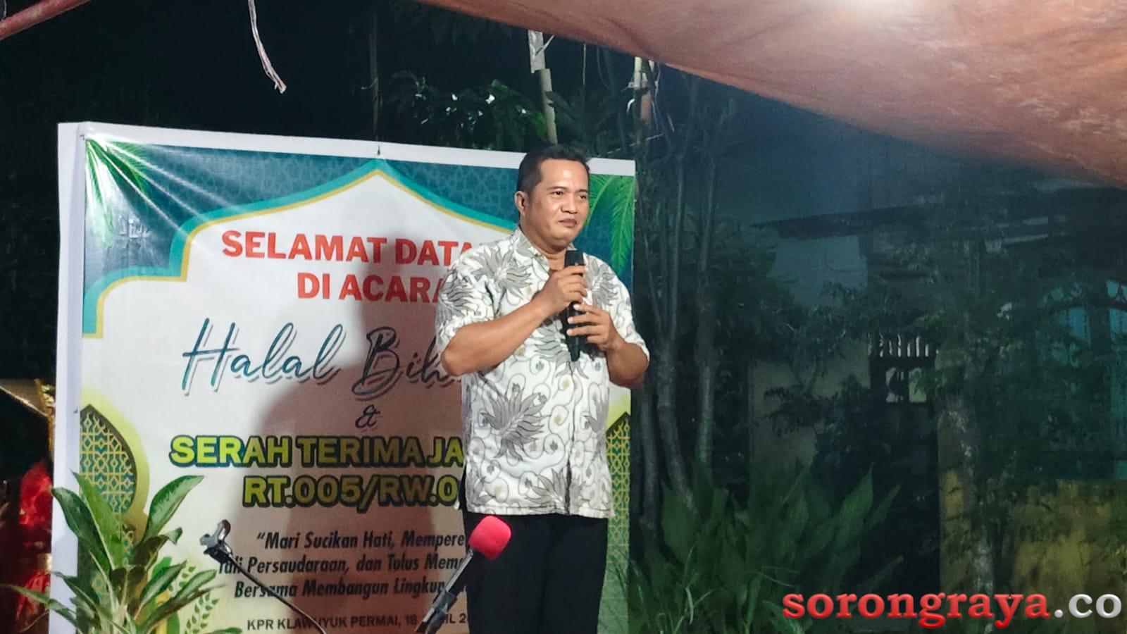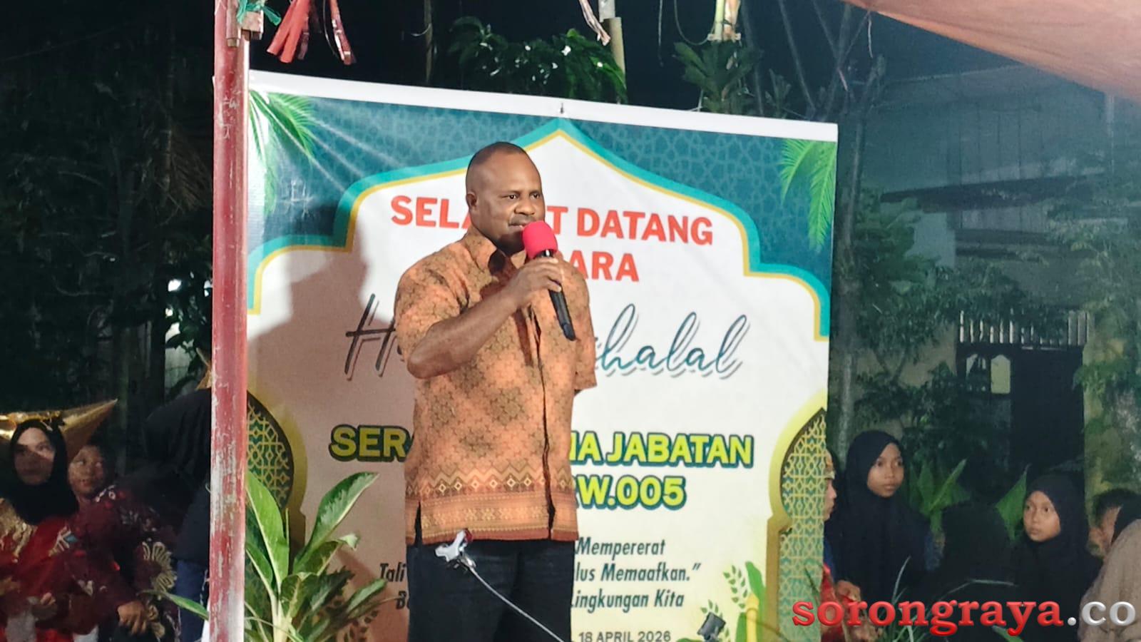 SORONG,sorongraya.co-Suasana penuh kehangatan dan kebersamaan mewarnai kegiatan Halal Bihalal yang dirangkaikan dengan serah terima jabatan (sertijab) Ketua RT 005/RW 005 Kelurahan Klawuyuk Permai. Acara yang digelar dengan meriah ini menjadi momentum mempererat silaturahmi warga sekaligus menandai pergantian kepemimpinan di tingkat lingkungan tersebut. Sabtu malam, (18/4/2026).