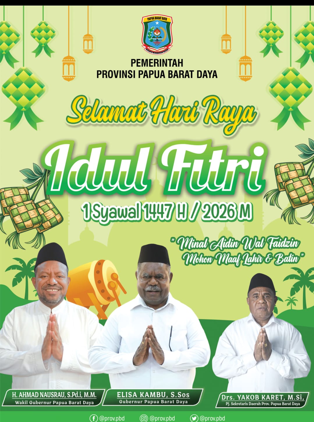 PEMERINTAH PROVINSI PAPUA BARAT DAYA MENGUCAPKAN SELAMAT HARI RAYA IDUL FITRI 1447 HIJRIAH